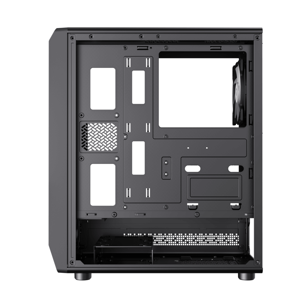 | El GameMax Destroyer MB Black Mesh es un gabinete Micro-ATX con panel frontal de malla para óptimo flujo de aire y soporte para refrigeración líquida de 360mm en la parte superior.